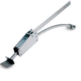 Herraje de brazo curvo articulado diseñado para puertas basculantes de 1 hoja de muelles y seccionales de la marca ROPER o similares, que por su característico movimiento de apertura no desbordante, precisan de este accesorio para la instalación del motor de techo seccional.