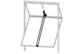Herraje telescópico para puertas de dos hojas, cuya hoja inferior posee una apertura hacia dentro. Solo es apto para las motorizaciones con el motor hidráulico.